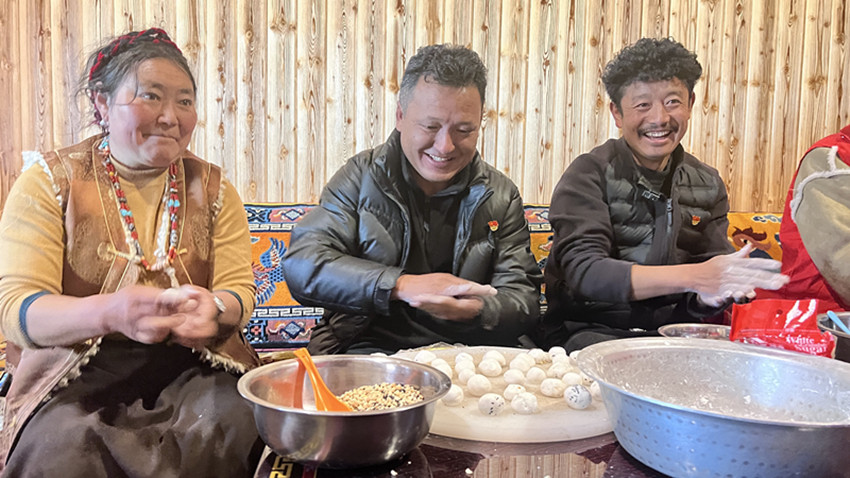 這邊拉著家常,那邊一碗碗熱氣騰騰的湯圓端上了桌。席間,朱文秀品嘗著這象征“團(tuán)圓”的湯圓,還不忘關(guān)心著格絨家的三女兒甲初拉姆的學(xué)習(xí)、就業(yè)意愿等情況,勉勵(lì)她要好好學(xué)習(xí),將來更好地建設(shè)祖國(guó)。