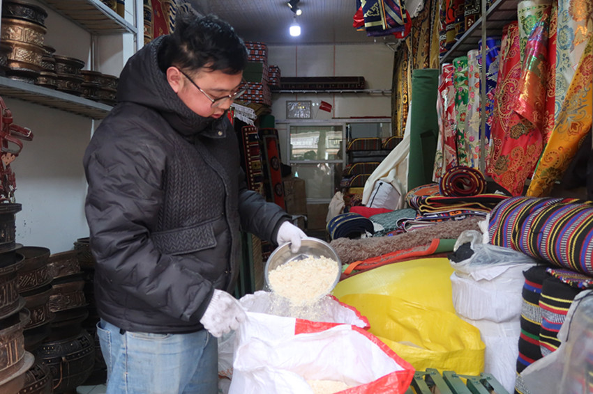 對于馬建文來說,像尼瑪這樣的“回頭客”還真不少,在與客人們打交道的過程中,獨(dú)在異鄉(xiāng)的他感受到了道孚群眾的溫暖、團(tuán)結(jié)和互助?!耙郧芭純河腥藖淼昀铩畵v亂’,附近的居民得知此事后,主動站出來幫助我,告訴大家各民族親如一家,要心手相連、和睦互助?!倍嗄赀^去,馬建文至今仍清晰地記得,店鋪剛開業(yè)時(shí),道孚兒女給予他的暖心幫助。