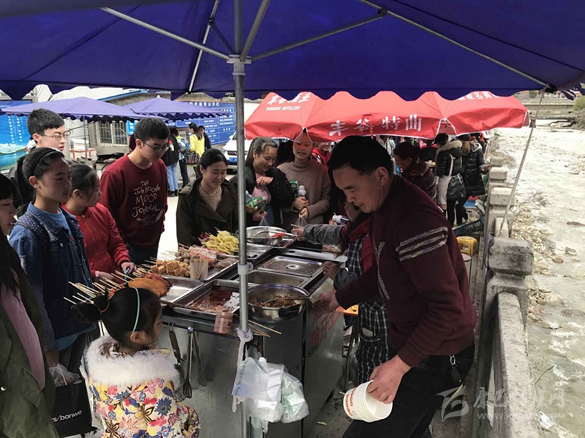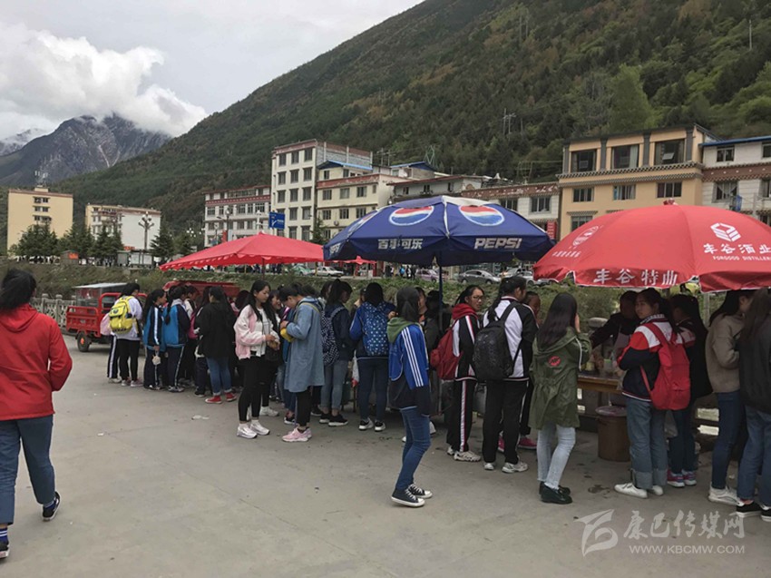 那么真實情況到底如何呢?7日,記者專門來到康定中學(xué)走訪調(diào)查。記者搭乘出租車前往學(xué)校,途中司機卻回應(yīng)“康中校門口那一段全是賣炸洋芋、炸雞腿的攤攤,車子根本開不過去,只能提前下車。”當記者步行過橋到達校門口路段時,雜亂無序而又異常喧鬧的場面立刻映入眼簾。約摸十來家燒烤油炸“流動攤點”上,商販們手中的烤具上下翻飛,幾十名身著“康定中學(xué)”校服的學(xué)生駐足其間,從校門出入的車輛不斷鳴笛避讓??久娼?、炸土豆、烤雞腿,濃濃的油煙、各種調(diào)料混合的氣味、滋滋的油炸聲……儼然一副“美食街”的火爆景象。