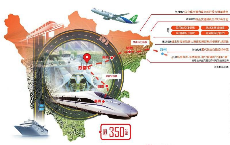 消除痛點。我省將重點推進成都經自貢至宜賓和成都經南充至達州兩條350公里時速的高速鐵路建設?!斑@兩條高鐵建成后,四川與全國主要經濟區(qū)均可實現高速直達,省內也可形成宜賓、達州兩個新的交通樞紐,從根本上消除目前只有成渝鐵路一條高速出川鐵路的局面。”孫云表示。