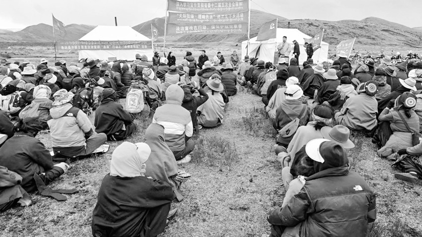 皚皚雪山相伴,莽莽森林環(huán)繞,措普湖猶如一面鏡子靜靜地躺在雪山下。湖邊草地上歡快的人們,或手拉手,跟著弦音學(xué)習(xí)巴塘舞蹈,或手捧一杯藏式奶茶,躺在沙發(fā)上,享受悠閑時光。