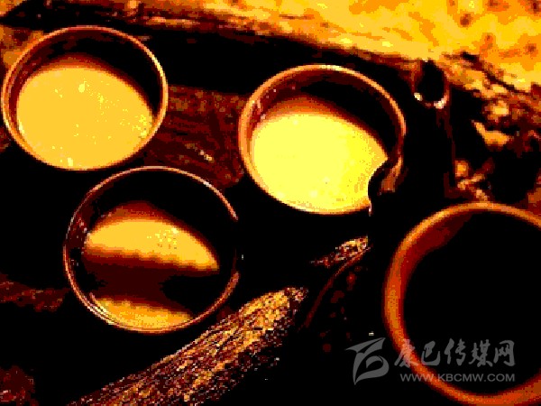 酥油是從牛、羊奶中提煉出來的。以前,牧民提煉酥油的方法比較特殊。先將奶計加熱,然后倒入一種叫做"雪董"的大木桶里(4尺、直徑1尺左右),用力上下抽打,來回數(shù)百次,攪得油水分離,上面浮起一層湖黃色的脂肪質(zhì),把它舀起來,灌進皮口袋,冷卻了便成酥油。制作酥油茶時。先將茶葉或磚茶用水久熬成濃什,再把茶水倒入"董莫"(酥油茶桶),再放入酥油和食鹽,用力將"甲洛"上下來回抽幾十下,攪得油茶交融,然后倒進鍋里加熱,便成酥油茶了。