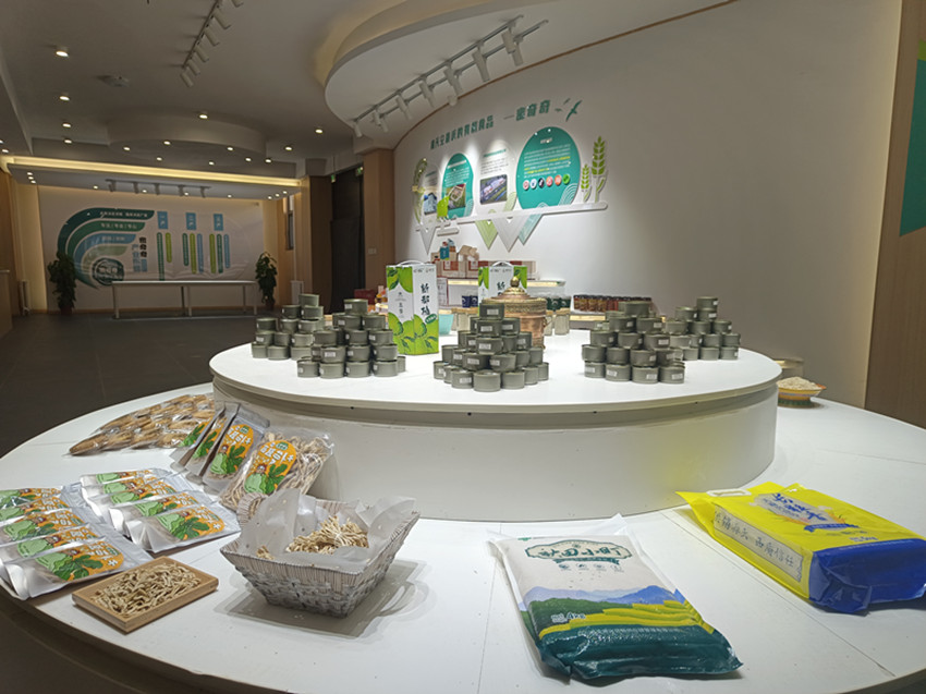 密奇奇公司大廳展臺上琳瑯滿目的有機(jī)產(chǎn)品。
