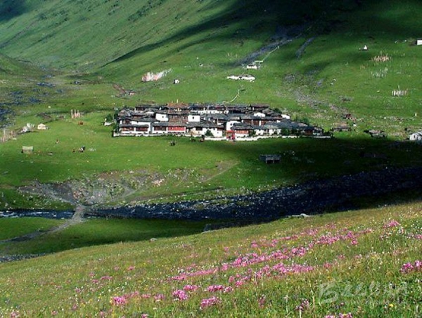 景區(qū)內(nèi)的莫斯卡溝自北而南流入磨子溝,繼而進(jìn)入革什扎河。保護(hù)區(qū)以莫斯卡溝流域范圍為主,北與錯郎溝分水嶺為界,西以與丹東河之間的分水嶺為界;南以拉龍溝為界東則以莫斯卡溝與阿科里溝的分水嶺為界。